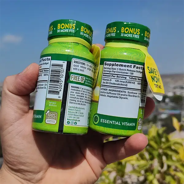 ما میدانیم که یک تجربه سلامتی تمیز برای شما و خانوادهتان چقدر مهم است. به همین دلیل است که سافت ژلهای سریع الجذب ویتامین D3 نیچرز فاقد GMO، گلوتن، لبنیات هستند و بدون هیچ رنگ مصنوعی، طعمدهندههای مصنوعی، شیرینکنندههای مصنوعی یا مواد نگهدارنده ساخته شده اند تا بتوانید با افزودن این ویتامین ضروری به برنامه روزانهتان احساس خوبی داشته باشید. ویتامین D که به طور طبیعی در اثر قرار گرفتن در معرض نور خورشید تولید میشود، یک ویتامین ضروری است که به سلامت استخوانها کمک میکند اما با صرف زمان بیشتر در داخل خانه و زمان کمتری برای جذب نور مفید خورشید، ما همیشه مقدار ویتامین D مورد نیاز خود را دریافت نمیکنیم. سافت ژلهای نیچرز با داشتن فرمول با قدرت بالا، 125 میکروگرم (5000 IU) ویتامین D3 فعال را در هر وعده در اختیار شما قرار میدهند و این کار را آسانتر از همیشه میکنند تا کمی نور خورشید به زندگیتان اضافه کنید.