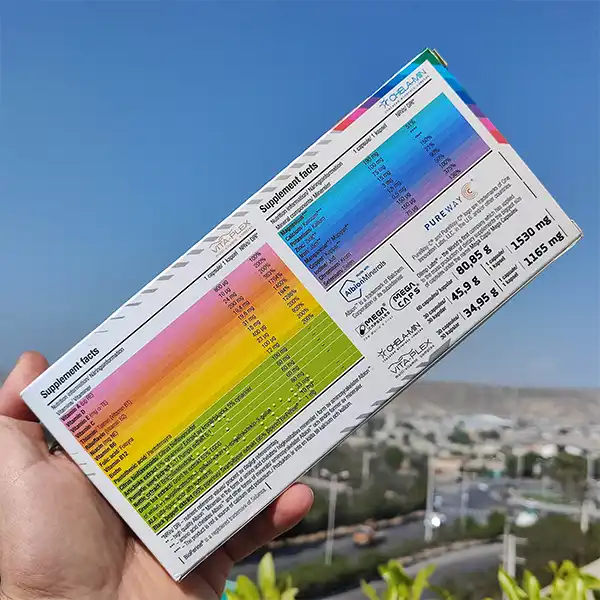 - دوز روزانه: روزانه 2 کپسول (1 کپسول از مجموعه ویتامینها و 1 کپسول از مجموعه مواد معدنی) مصرف شود.
